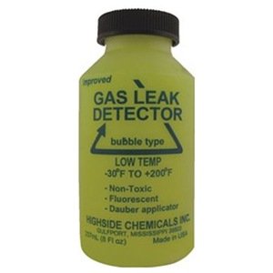 Leaks appear as large strong bubbles withch cling to the surface and are fluorescent under a black light. Non-freezing Fluorescent Non-toxic Non-hazardous Bubble-type gas leak detector Low-Temp Rated to -30?F (-34?C) Mid-Temp Rated to 27?F (-3?C)